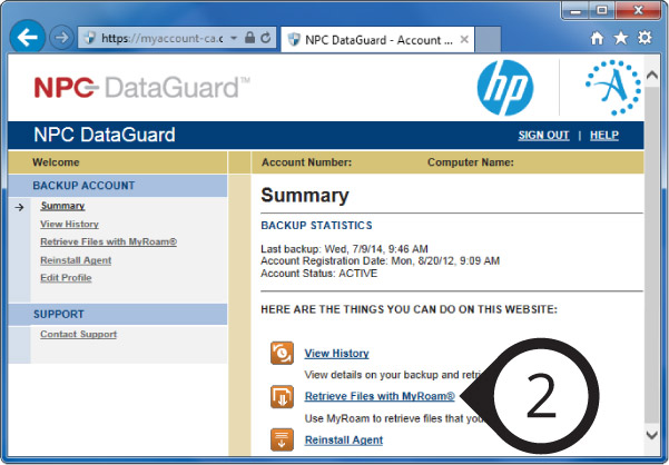 - Go to www.npcdataguard.com/myroam and sign in, using your Online Backup Account password.