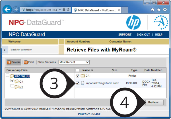 MyRoam® gives you the ability to securely access your backup files from any computer with an Internet connection. If your NPC DataGuard Pro unit is not where you are and you need a file, you can access your backup files by logging into your MyRoam account.